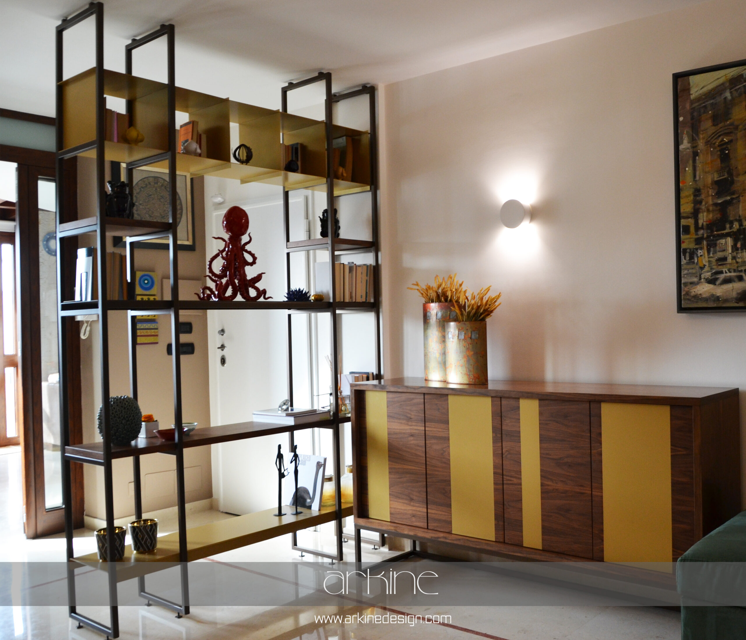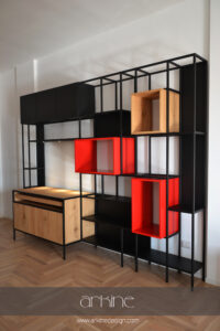 Considerate e valutate le esigenze dei clienti individuiamo una configurazione adatta della parete, la quale può variare sia nelle forme che nelle funzioni. Cassetti affiancati ad ante di vetro, blocchi di legno che attraversano tubolari di ferro, offrono alla parete carattere e ampia possibilità di personalizzazione nelle forme e nei materiali.